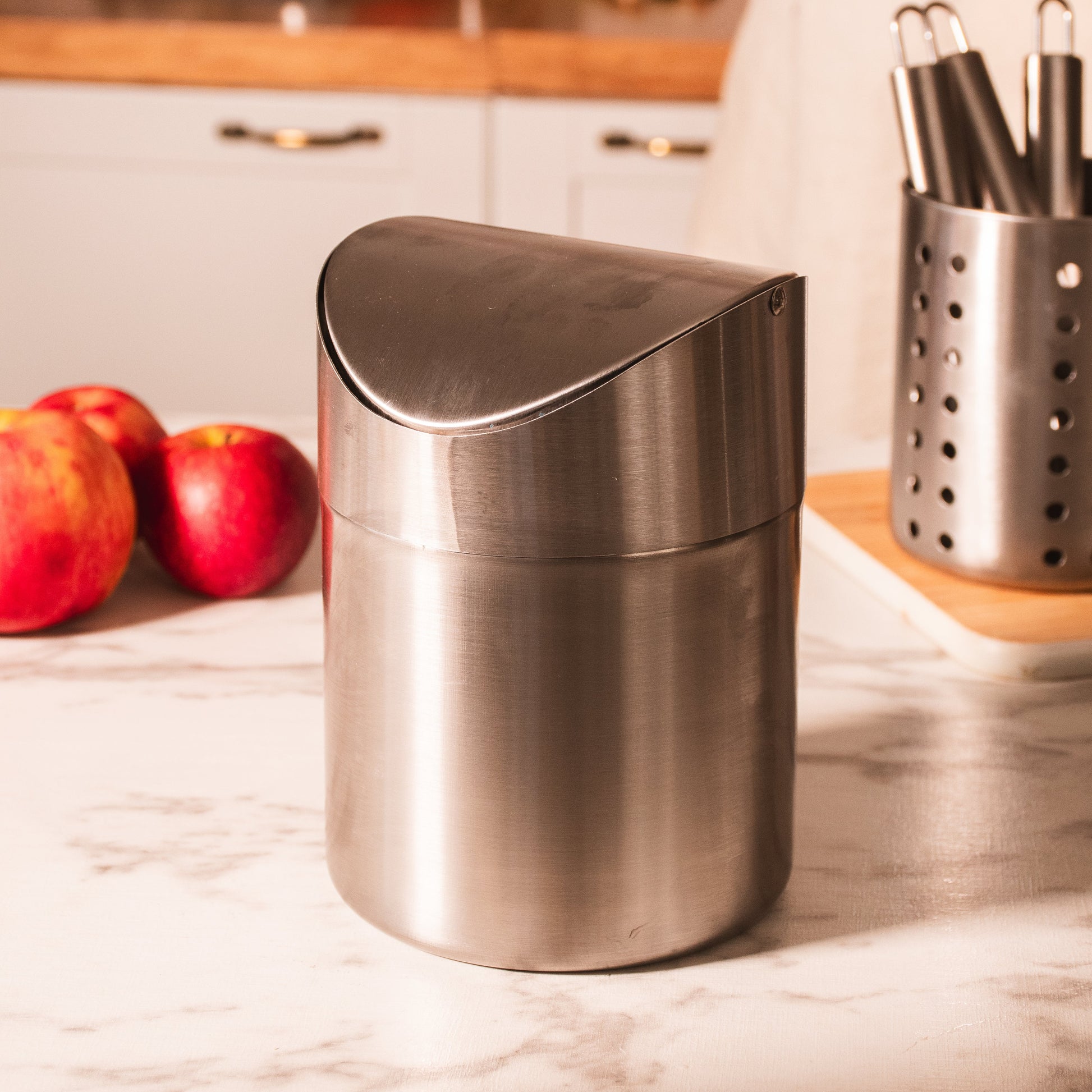 Cesto sobre mesada, que mantiene los residuos organizados y al alcance con un diseño práctico y discreto para el uso diario.